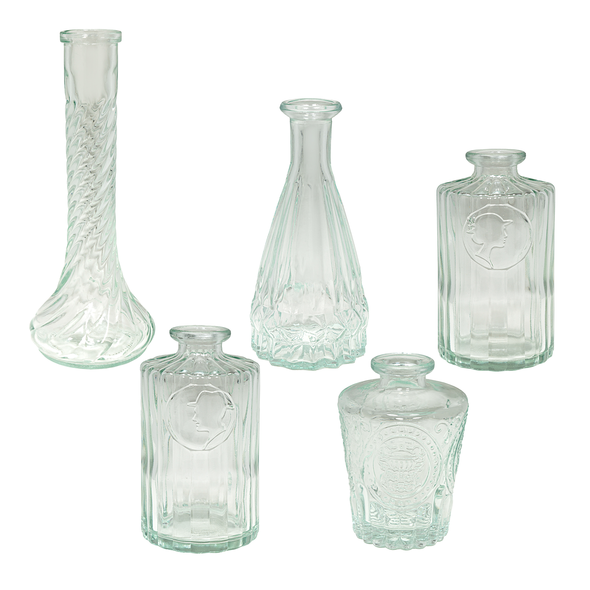 MINI VINTAGE GLASS VASE SET 18PC/BOX - CLEAR